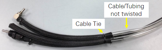 Cut the two cable ties holding the thermistor cable to the two air tubes and remove the old thermistor cable from the large braided wrap, freeing it from the two air tubes.