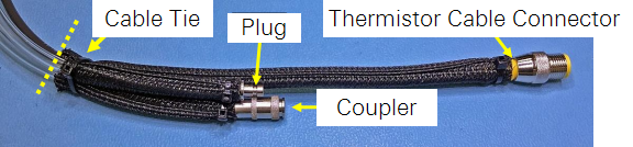Re-wrap the thermistor cable in the braided wrap and secure the ends with two small cable ties (part number 218-08499).