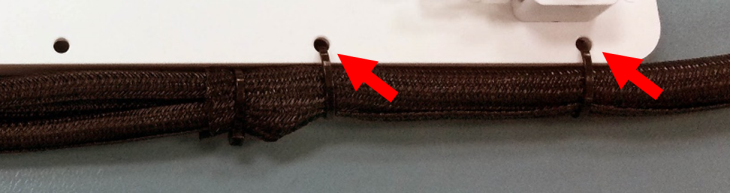 Loosely install four small cable ties (part number 218-08499) to secure the braided cable to the support arm.