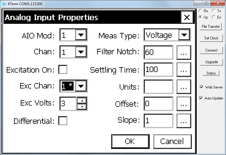 - Exc Chan: The excitation channel that allows the datalogger to read an excitation voltage.