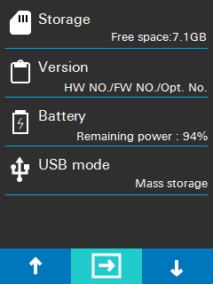 - In the Options screen, tap the down arrow to go to the second page, and select USB mode.