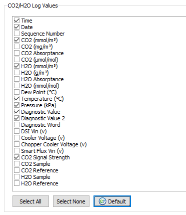 Select variables to log under CO2/H2O Log Values.