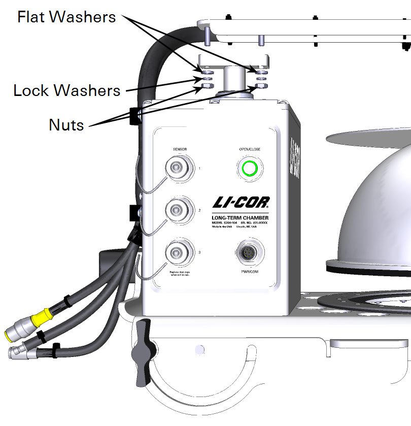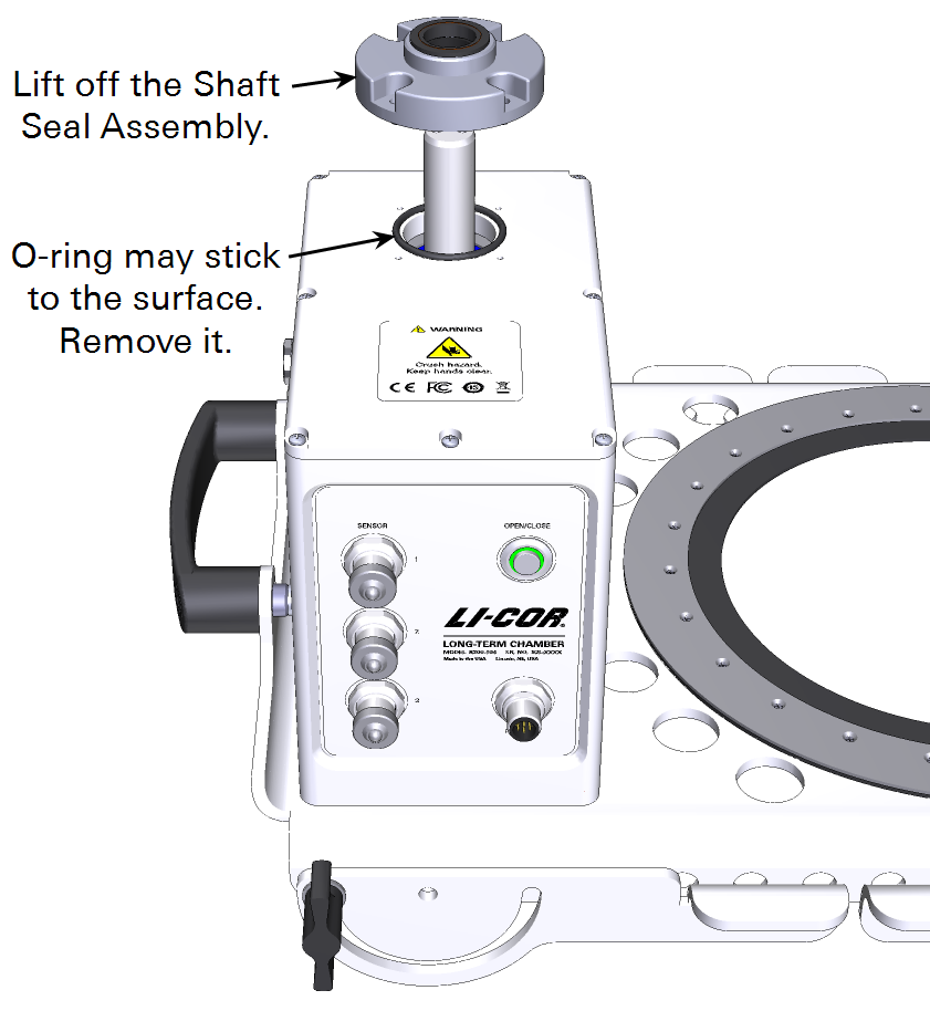 Before you disconnect the PWR/COM cable from the chamber, you will first need to move the chamber to its open position. If the open position does not allow you to fully access the gasket, you will need to change the open position. See Support: LI-8250 Multiplexer.