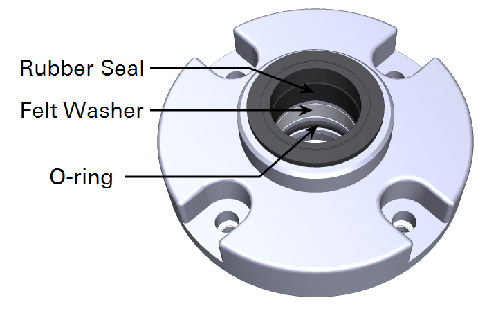 - Apply the full quantity of synthetic oil to the felt washer inside the shaft seal assembly.