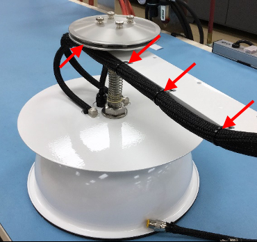 Loosely install four small cable ties (part number 218-08499) to secure the braided cable to the support arm.