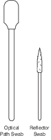 - There are a number of swabs in the spare parts kit. Dip one end of the swab into a 50:50 ethanol/water solution and carefully swab both ends of the optical bench, until there is no more visible residue. A mild solution of dish washing type soap and water will also work. Do not use abrasive cleansers, as they can irreparably damage the gold plating on the optical bench.