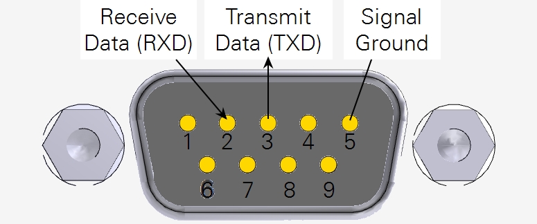 The image below shows the pin assignments for the 9-pin RS-232 serial connector.