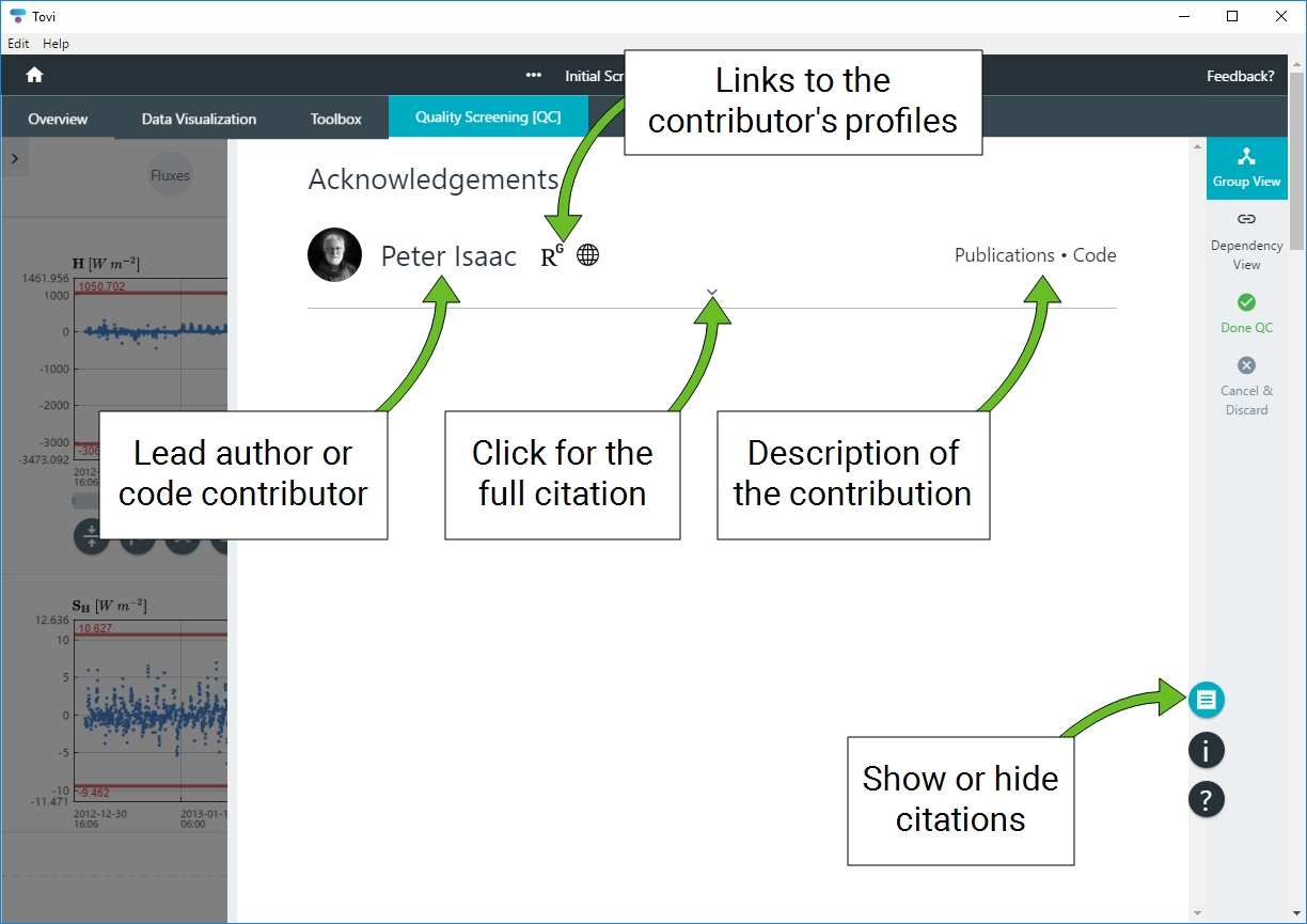 Tovi® Software is a suite of tools for analyzing eddy covariance flux and meteorological datasets that have been processed with EddyPro Software, either on a desktop computer or on the SmartFlux System. Tovi is designed to bring together analysis tools, developed by or with the scientific community, into a unique, interactive and intuitive environment, to facilitate and streamline typical processes such as quality control, flux gap filling and flux partitioning, as well as to enable novel analysis such as footprint-based flux allocation.