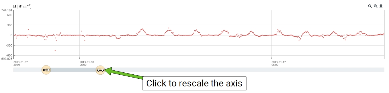Zoom and Scroll: Many charts can be zoomed with the scroll bars on both the horizontal and vertical axes. Click the end of a scroll bar to zoom in or out. After zooming in, you can scroll the view.