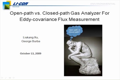 Both closed-path and open path CO2/H2O analyzers are widely used to measure the CO2 and H2O flux between an ecosystem and the atmosphere with the eddy-covariance technique. This webinar will discuss their strengths, advantages and different data processing procedures for the each type of analyzer when used for flux measurements.