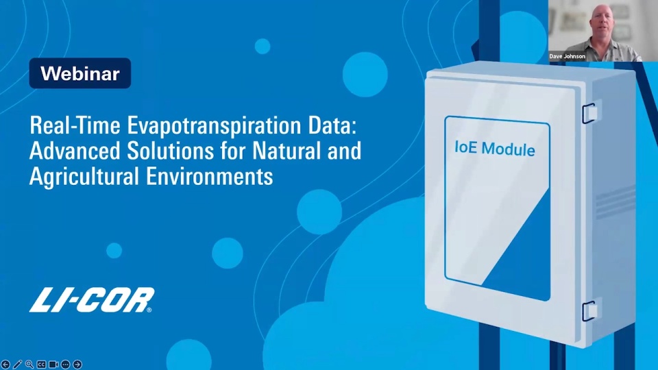 The Water Node from LI-COR offers a simple way to monitor actual evapotranspiration from one or multiple locations and provides users with the ability to access and share data via an online platform. This webinar will provide an overview of the Internet of the Environment (IoE) Module, LI-COR Cloud, and the LI-710 Evapotranspiration Sensor for monitoring ET in natural and agricultural ecosystems, and how these tools can be used to simplify the monitoring of actual ET. Real-world data and examples will be shown.