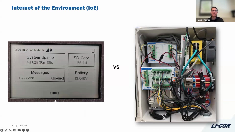 This webinar provides an overview of the hardware components of the Carbon Node, including a deep-dive on the LI-720 Carbon Flux Sensor with integrated carbon dioxide and water vapor gas analyzer, co-located vertical wind speed measurements, integrated photosynthetically active radiation (PAR) sensor, air temperature sensor, relative humidity, and barometric pressure sensors, as well has integrated flux processing and horizontal wind speed measurements.