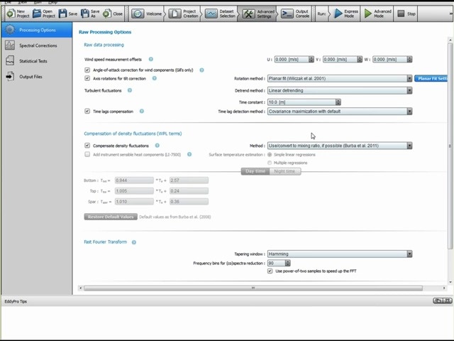 • Using advanced settings of EddyPro 3.0