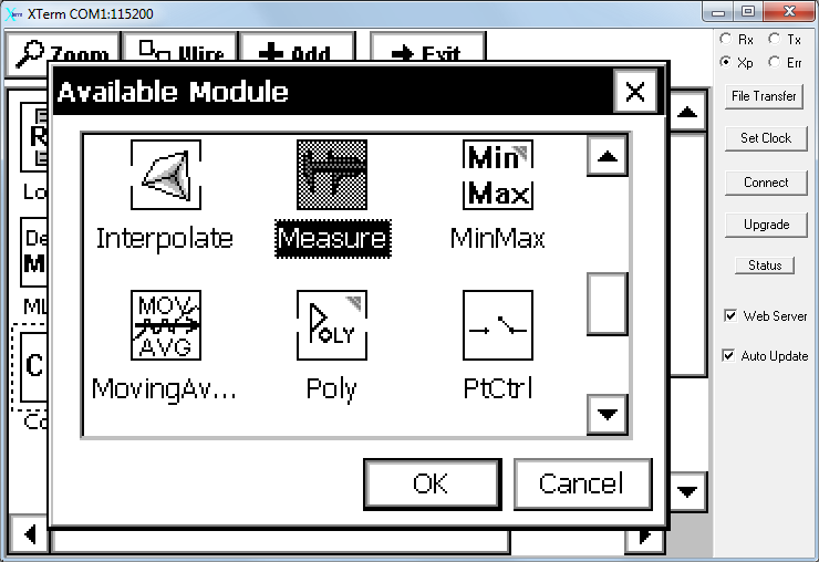 - The Poly block applies a polynomial to the analog data provided by the sensor. It goes in between the Input and MovingAverage blocks. Click the Add button, then click Processing. Select the Poly block and click OK.