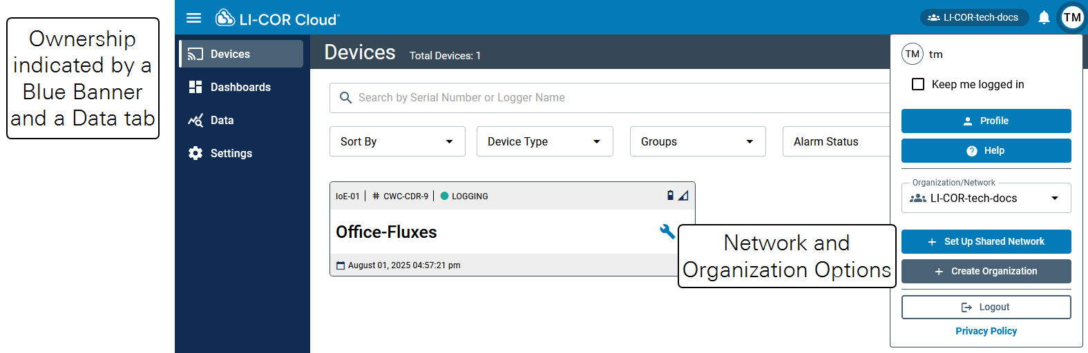 Account owners can create Shared Networks, which are a virtual collection of devices and users spanning multiple organizations. This can facilitate research and collaboration across institutions, while keeping full permissions available to a more limited number of account holders. With Shared Networks, organizations remain at the top of the hierarchy, retaining control over the devices. Shared Networks can include devices from multiple organizations, so data is visible to a group that is part of a different organization.