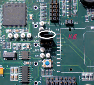 - Figure 6‑8. Move the jumper at location LK8 (left) so it covers both pins (right).