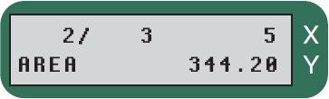 The top line displays the ENTRY number (1), the total entries (3), and the COUNTS for that entry (0, indicating that it is an X value). The bottom line displays AREA, LEN, AV WD, or MX WD depending upon which has been selected using the AREA, LEN, AVG WIDTH, or MAX WIDTH keys. Try pressing these keys before proceeding.