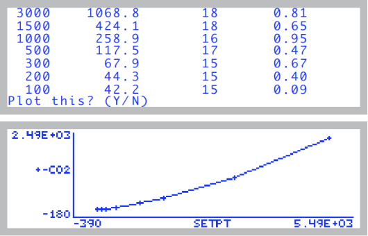 - You can also see this plot at any later time, by selecting "Plot" under "CO2 Mixer" in the Calib Menu.