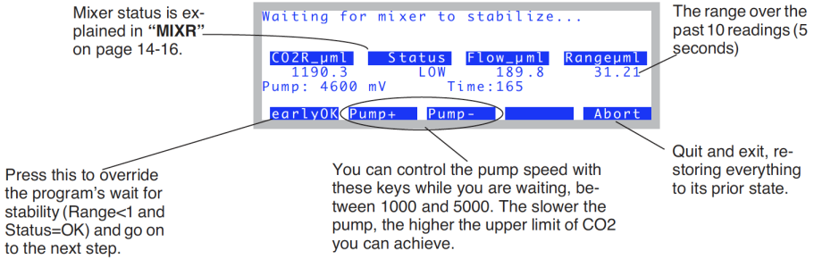- If the mixer isn’t already on, the system turns it on, and sets its target to the highest possible value (5 volts). The program then waits for stability of the reference CO2 reading to be achieved (Figure 18‑17).