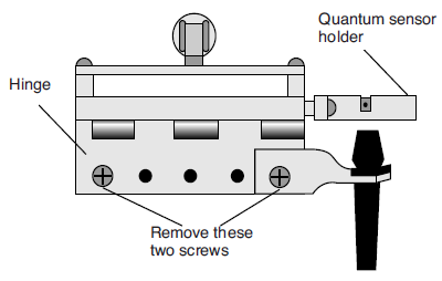 - Remove the two screws from the hinge on the rear of the upper half of the leaf chamber (Figure 19-31). The upper portion of the leaf chamber can now be moved aside; unhook the connector from the PAR sensor or LED Light Source, if necessary.