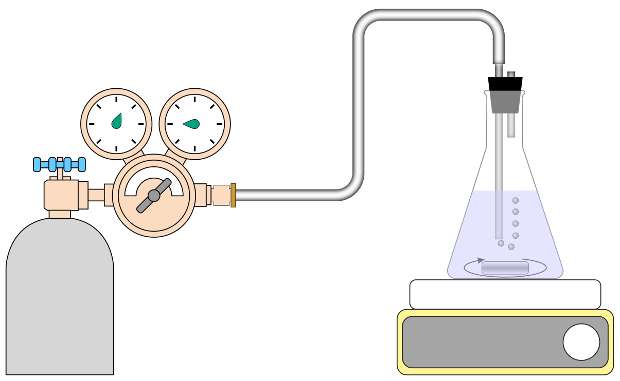 Prepare media by equilibrating it to the CO2 concentration that you will have in the chamber during the first measurement. For example, if starting measurements with a CO2 concentration of 400 µmol mol-1, ensure that the air dissolved in the media has been pre-equilibrated to this concentration. You can bubble tank air (400 µmol mol-1 CO2 in air) through the media to prepare it. Blank media is used to prime the chamber (see Prepare the instrument) and as a carrier for the algae (Preparing the sample).