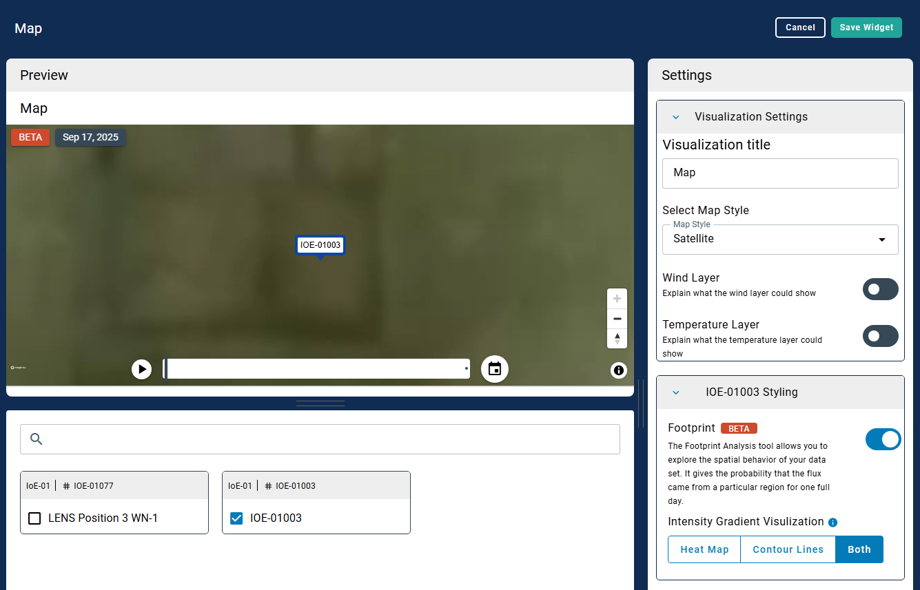 To view data from an instrument, you will create a Dashboard and add Widgets to it. LI-COR Cloud will show a variety of widgets by default. You can add, move, and re-size widgets to suit your preferences. For Water Nodes, two widgets may be of special interest: Accumulation and Gap filling.