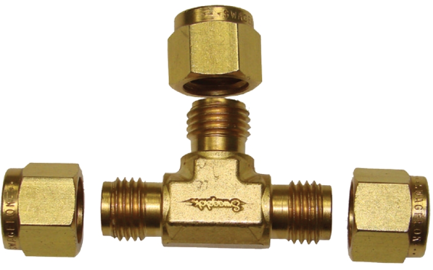 - Install a brass nut on each end of the tubing assemblies, and then install one set of ferrules on each assembly as shown.